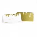 Bold and stylish, these gold dipped pyramid place card holders will make a ...more