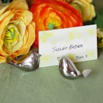 Silver ball place card holder for weddings, corporate events and holiday events. ...more